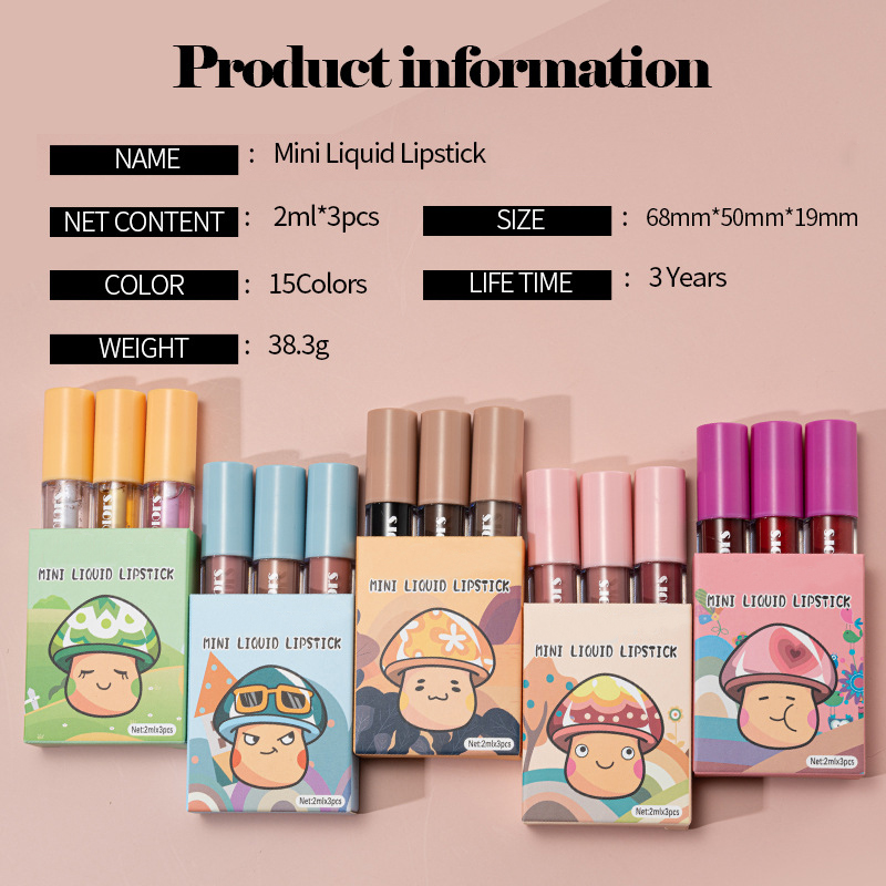 3Pcs Matte Liquid Lipstick Long Lasting Waterproof Velvet Lip Gloss Set