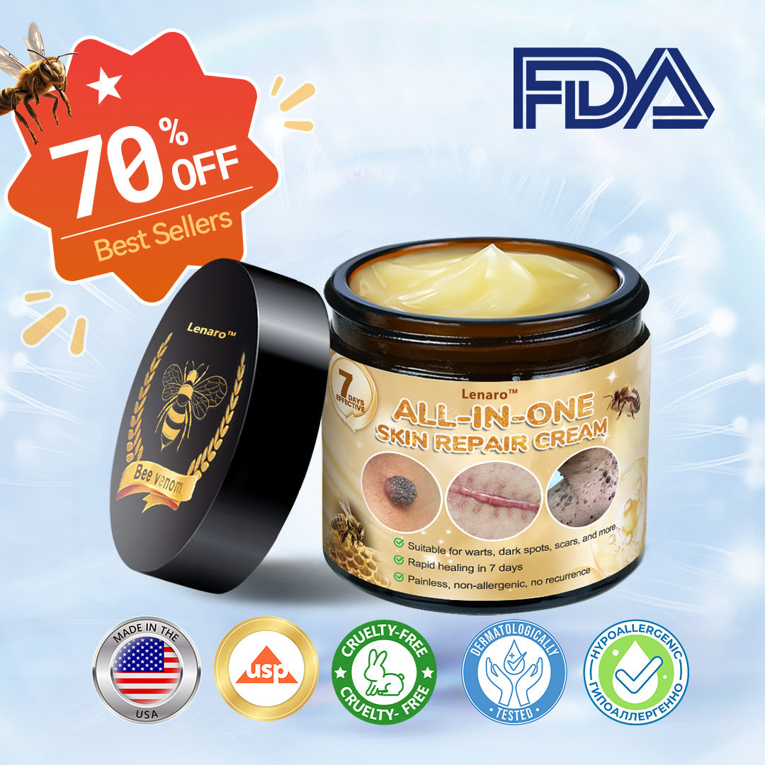 The Bee Venom All-in-One Cream is a potent remedy for addressing various skin issues, owing to its unique blend of bioactive compounds from bee venom. With proven anti-inflammatory, antibacterial properties, and powerful enzymes, it effectively tackles different skin problems.